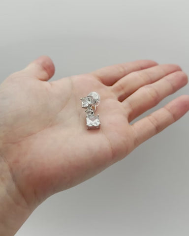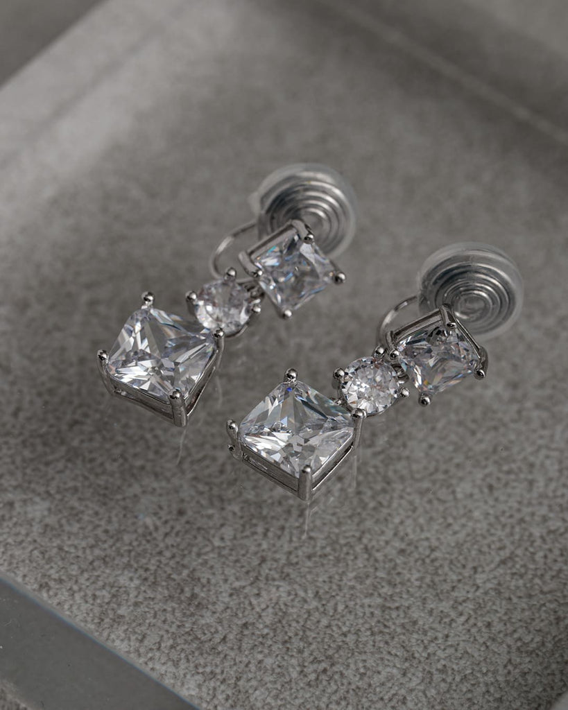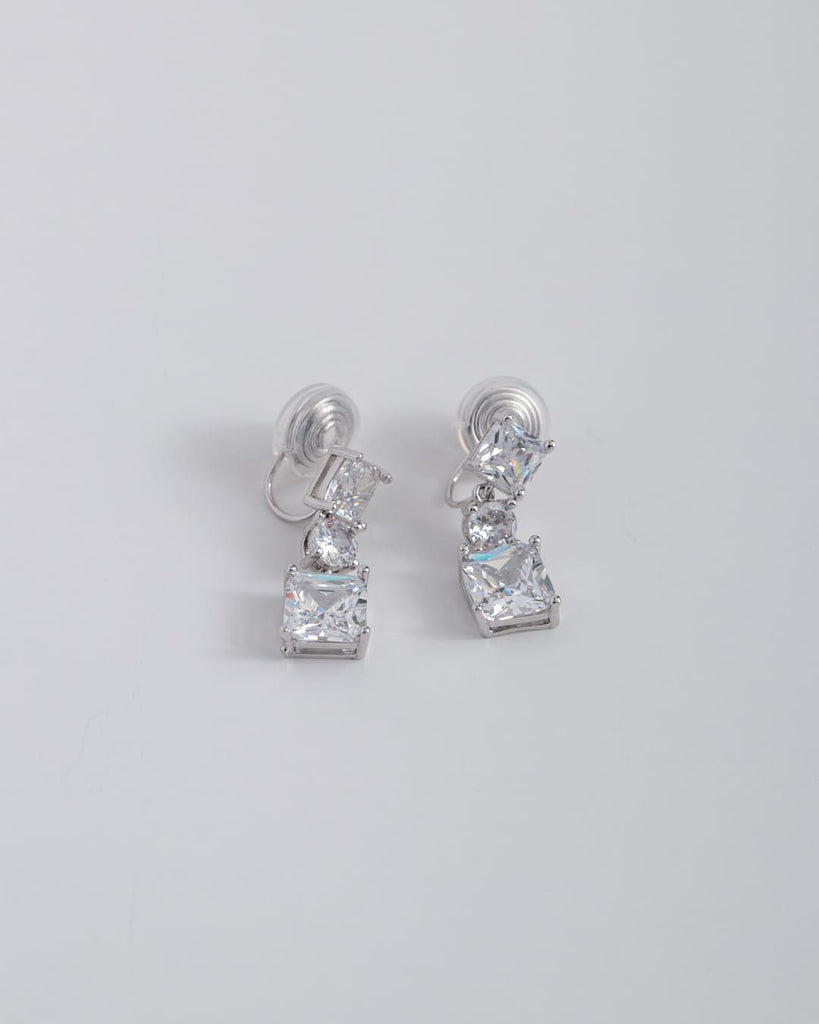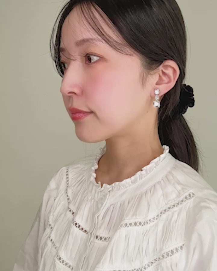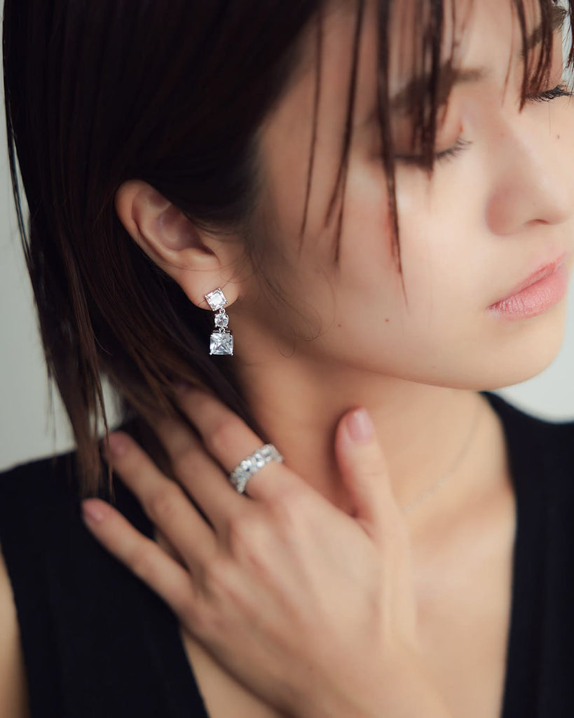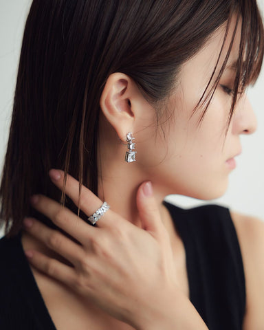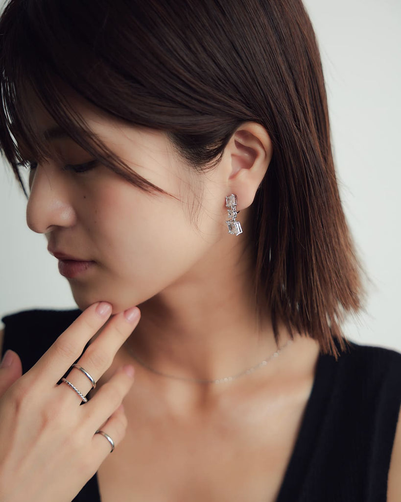 異なるカットのストーンを縦に連ねた、凛とした存在感のイヤリング。