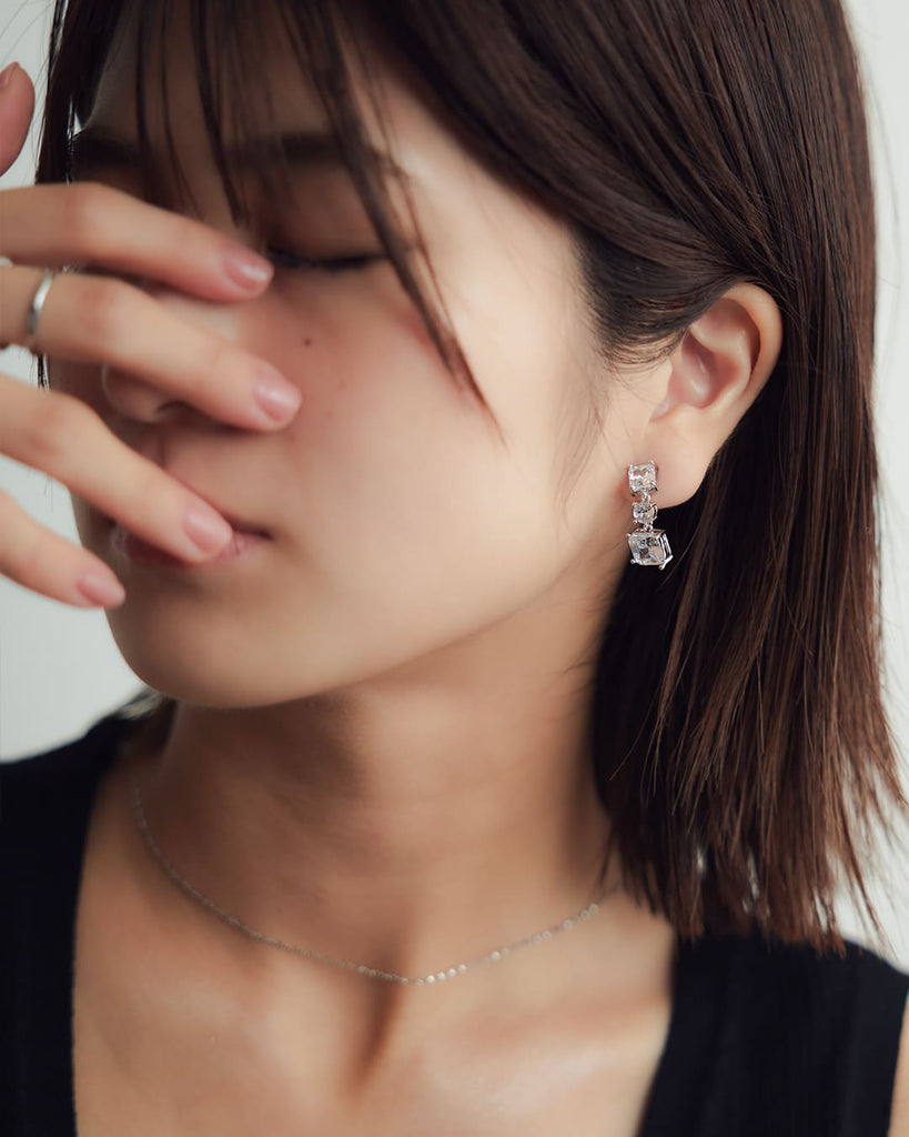日常にも特別な日にも寄り添う、洗練された“3つの輝き”をイメージしたイヤリングです。