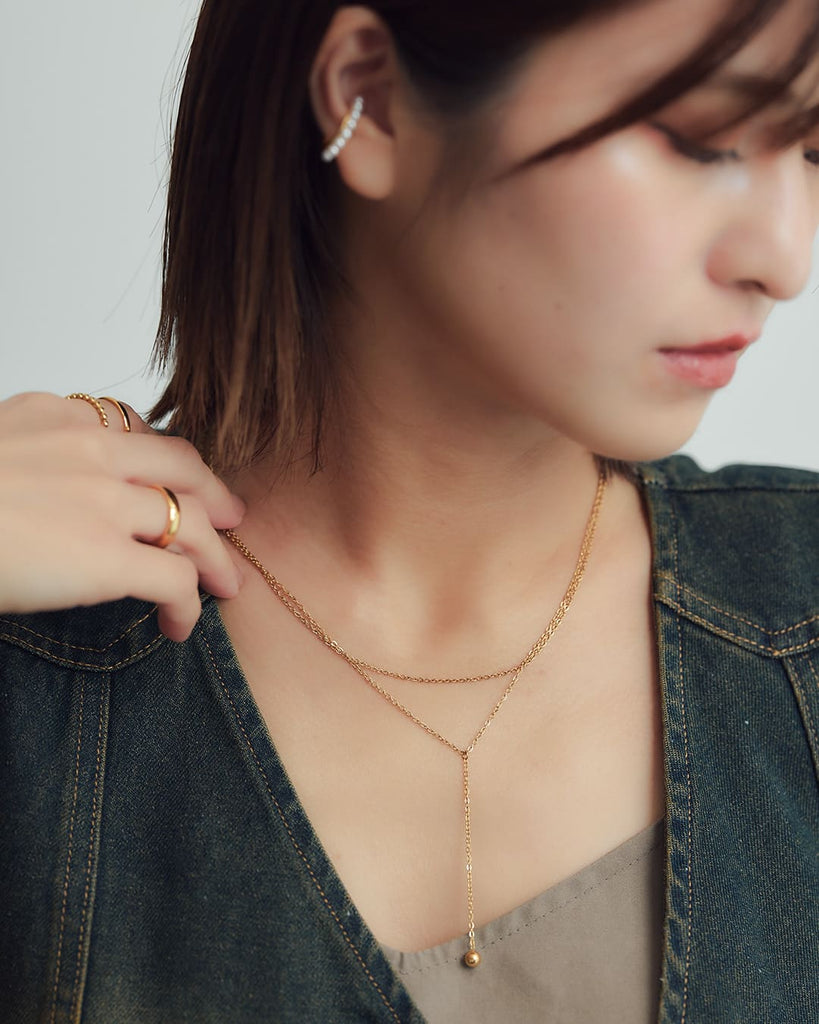 2本のチェーンが重なるデザインは、単体でつけてもレイヤードしているような奥行きを楽しめます。