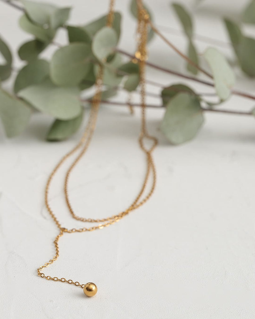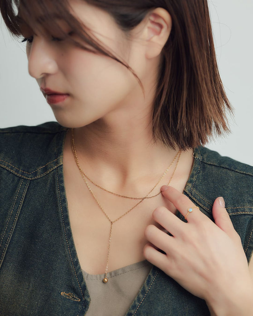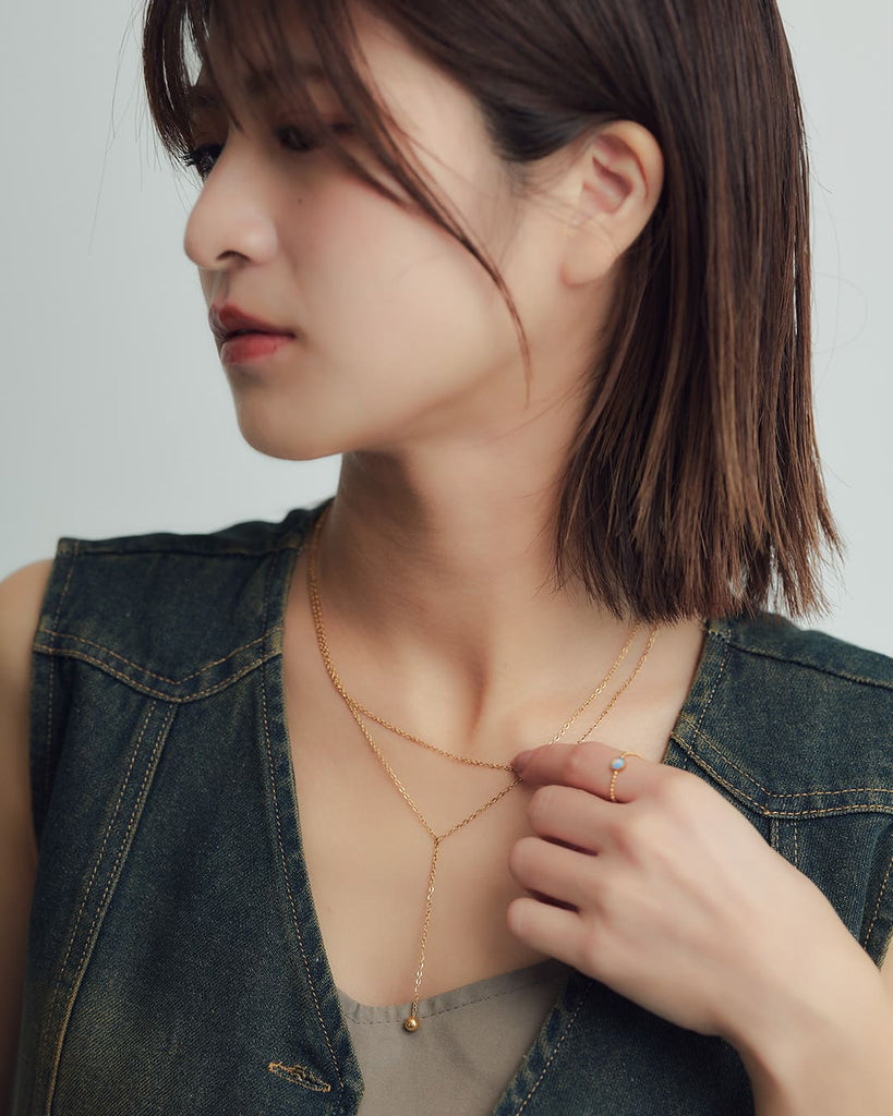 ふわっと軽く揺れるボールモチーフが、首元にさりげない抜け感をつくるネックレス。
