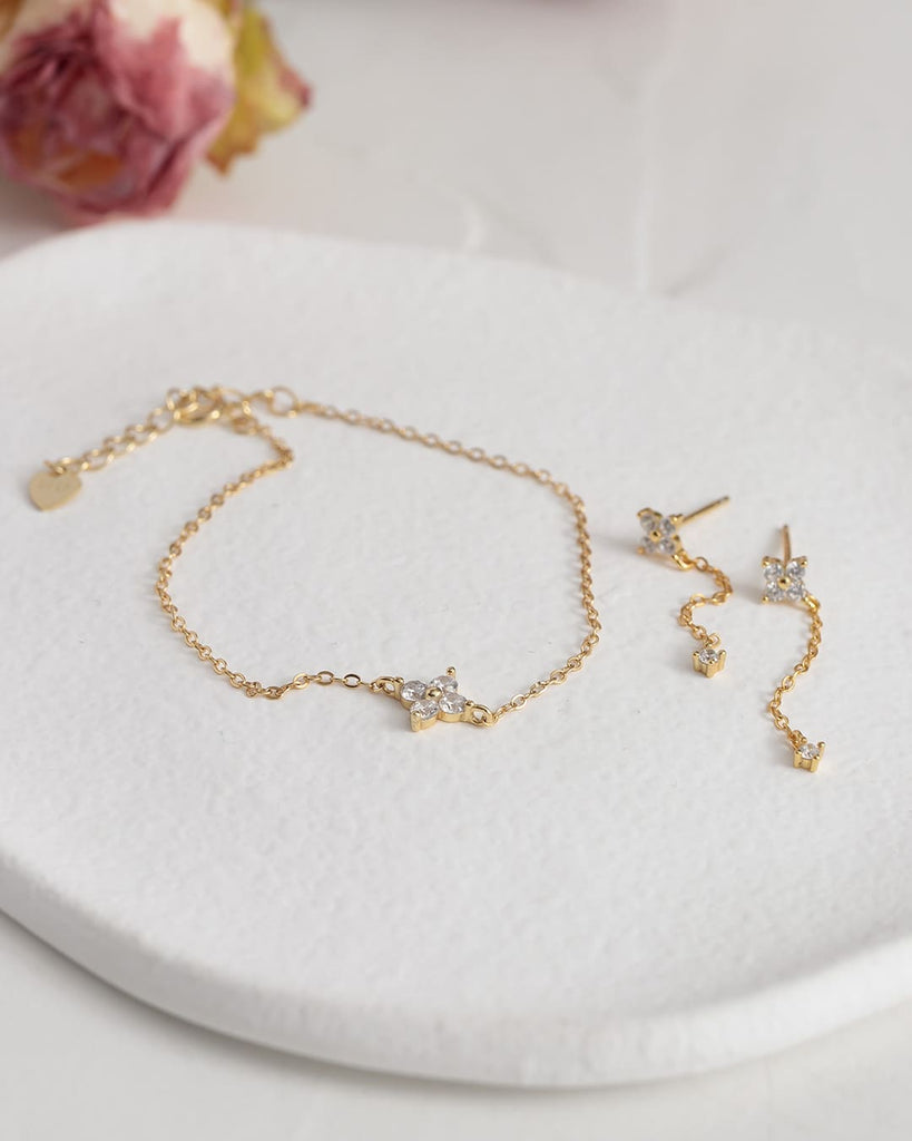 【S925/18KGP】フィーネチェーンピアスと【S925/14KGP】シャインフルールブレスレット