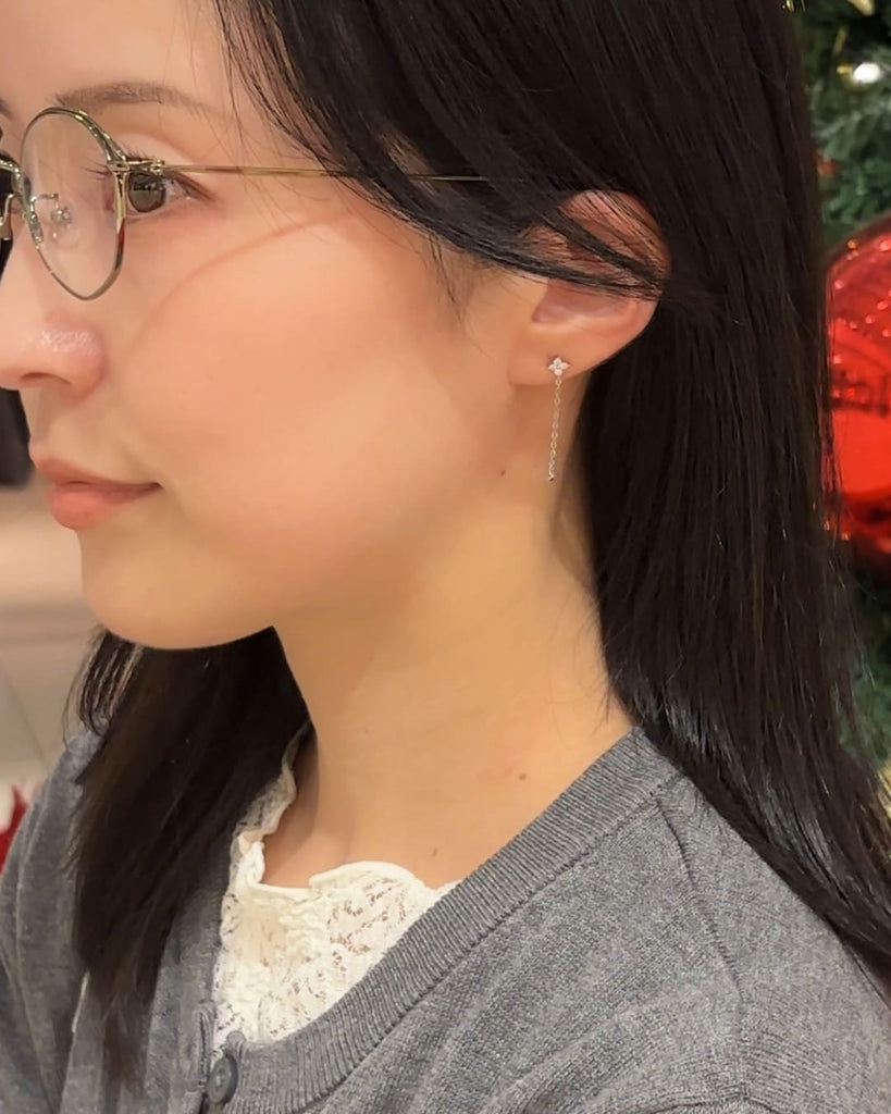 | サイズ | チェーン部分の長さ:約2cm モチーフの大きさ:約5.5mm ポストの太さ:約0.7mm ポストの長さ:約1cm |