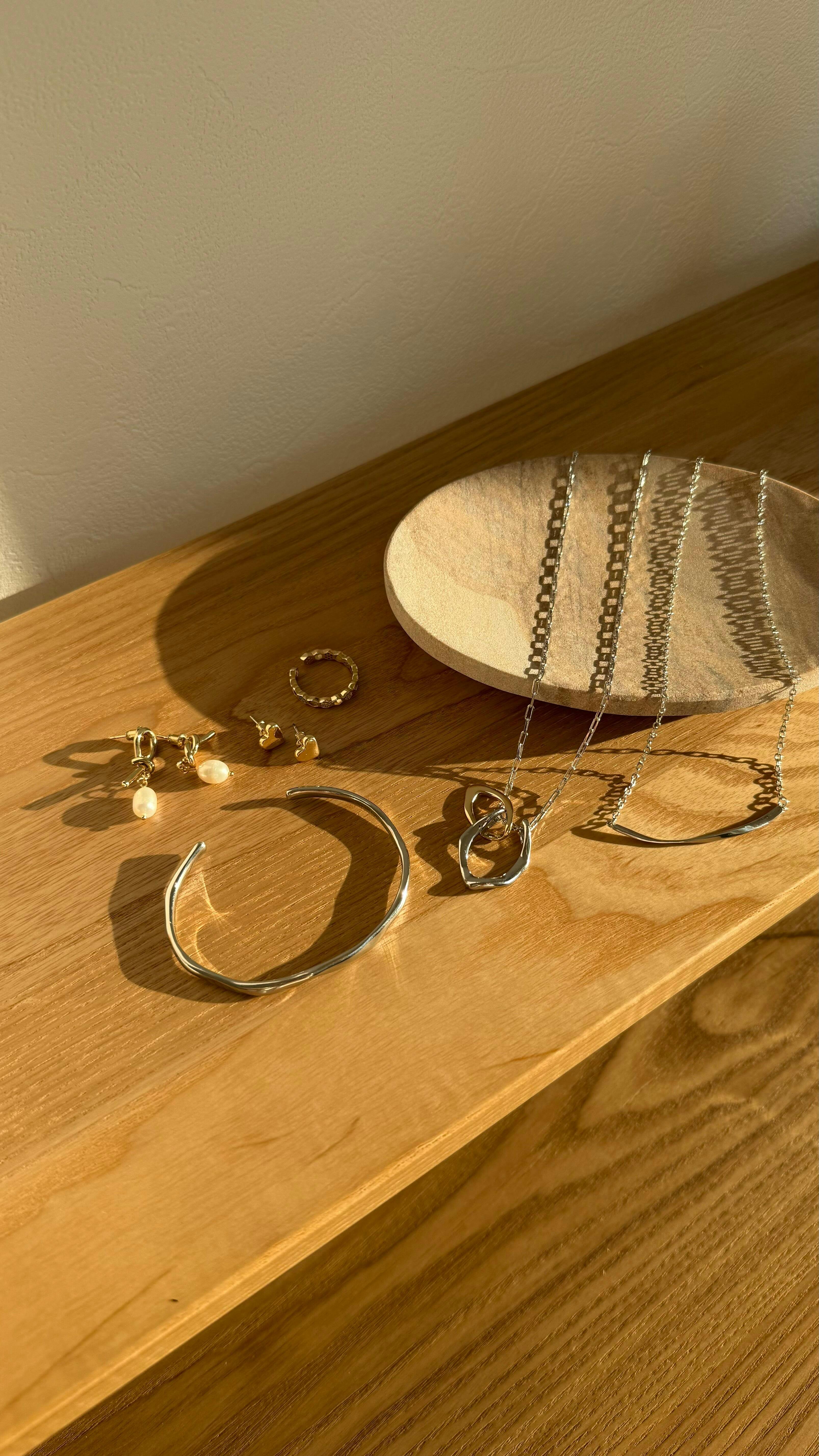 - シルバーは空気中の硫黄や塩素に反応して黒く変色する特性があります。ご使用後はやわらかい布で軽く拭き取り、密封袋などで保管いただくことをおすすめいたします。