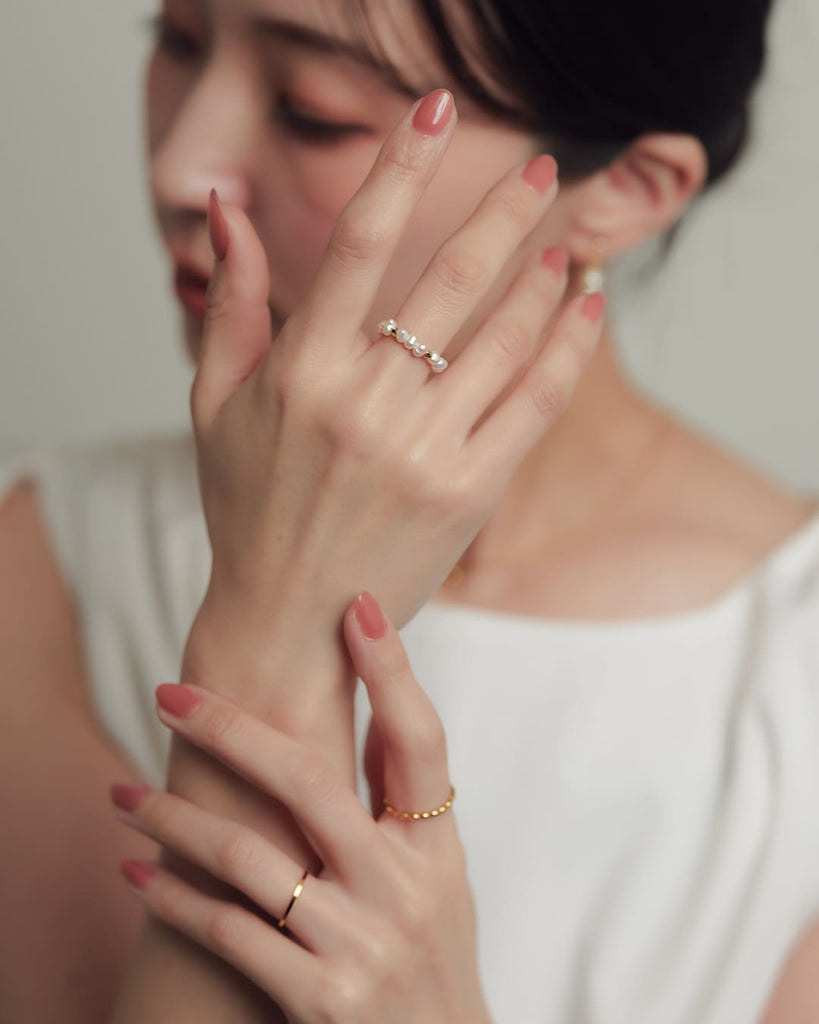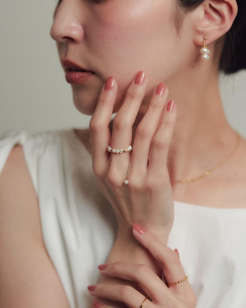 不揃いな天然淡水パールのチェーンリング。
