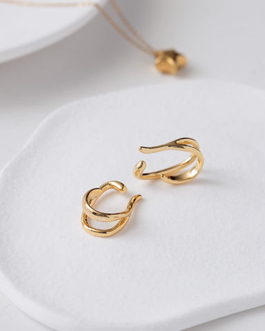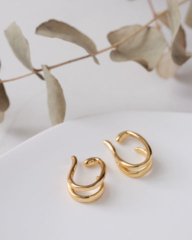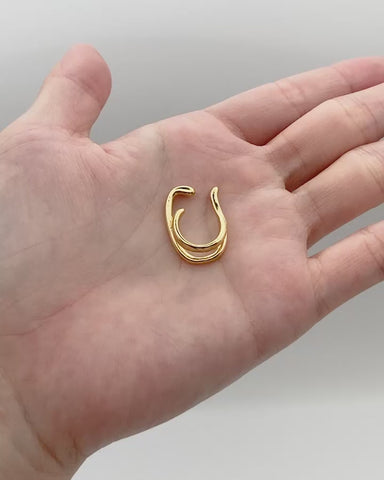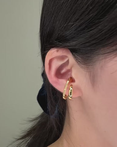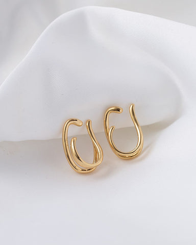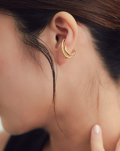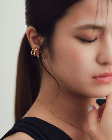 ふたつのカーブがくるんと重なる、立体的なシルエットが魅力のイヤーカフ。