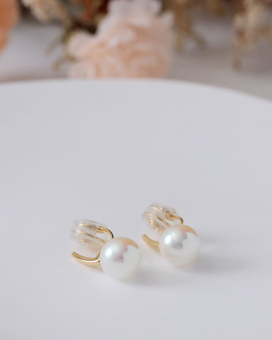光を受けてほんのり艶めくフェイクパールが、耳元にやさしい品を添えます。