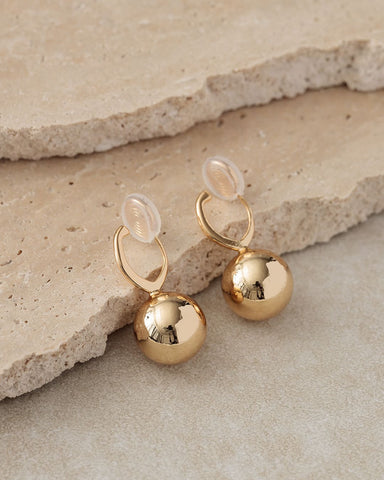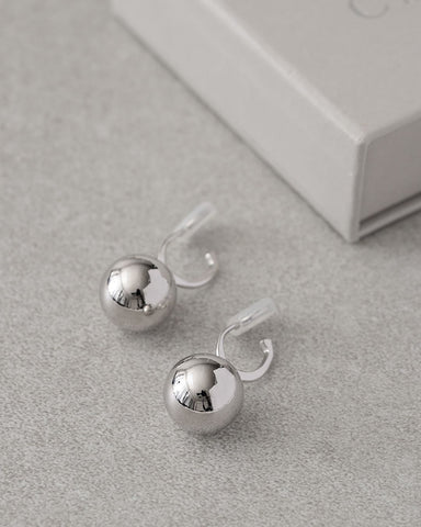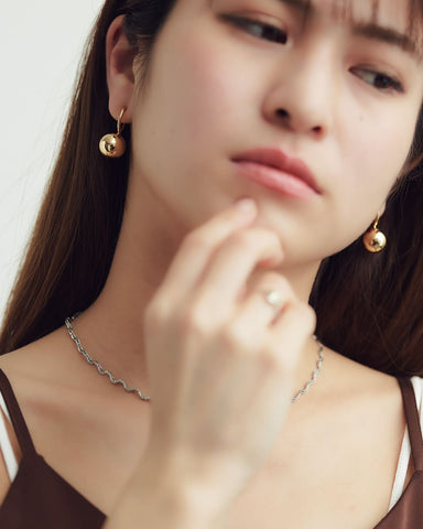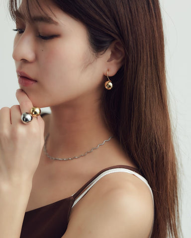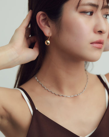 ころん、とまあるいフォルムが耳元でちょこんと揺れるボールイヤリング。