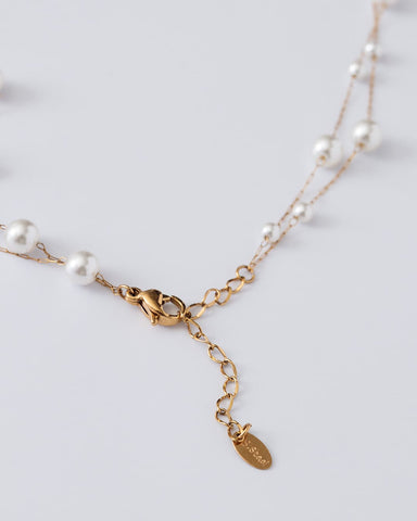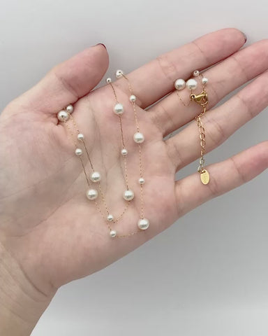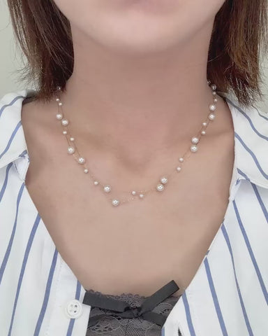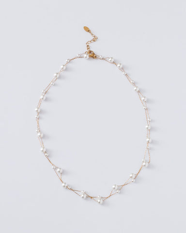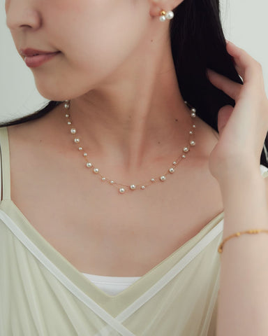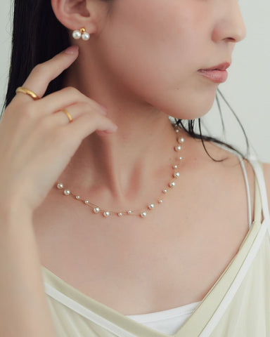 ふわりと軽やかに首元を包み込む、二連風デザインのパールネックレス。