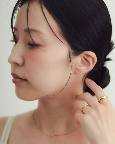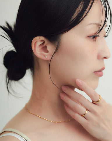 小粒だからこそ、2個付けやイヤーカフとの組み合わせもしやすく、コーデの幅が広がります。