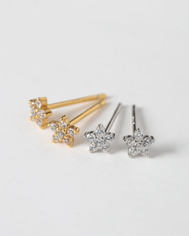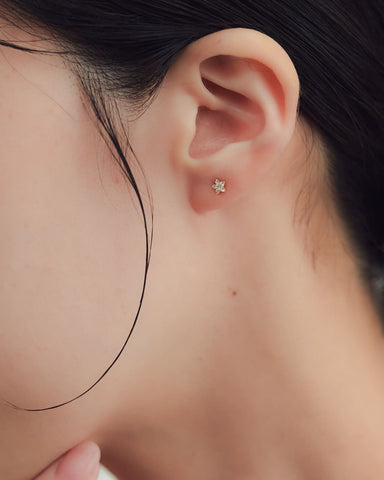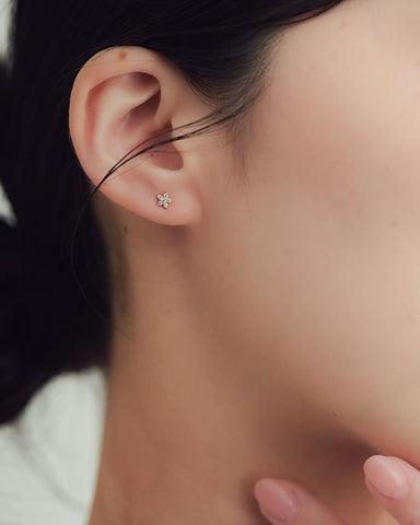 直径約4mmのモチーフに、ぷちぷちっとジルコニアをちりばめた繊細なデザインが、耳元でキラキラとやさしく輝きます。