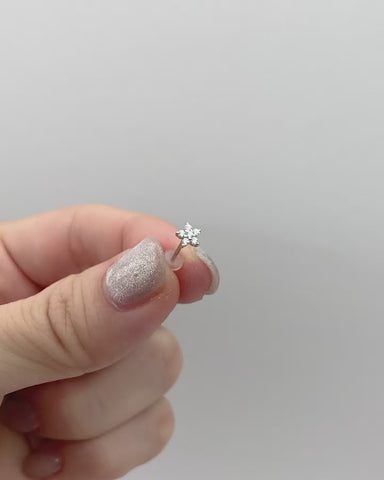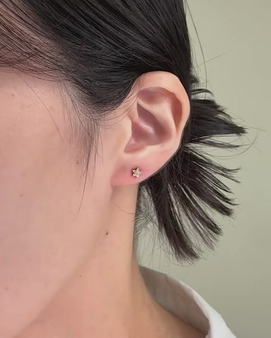 まるで雪の結晶をそっと閉じ込めたような、小さな花型ピアス。