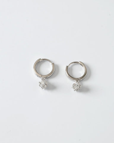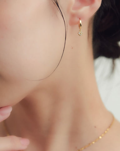フープのなめらかなカーブと、きらめきを閉じ込めた小さなチャームのバランスが絶妙で、シーンを問わず活躍してくれるアイテム。