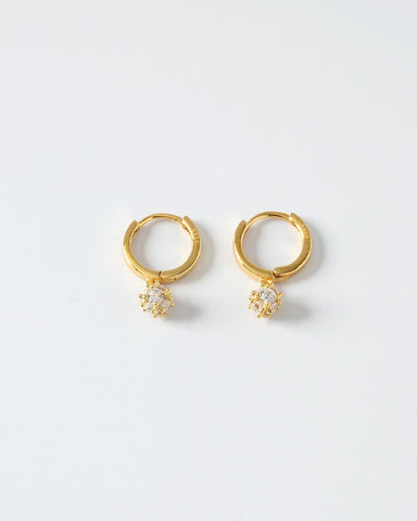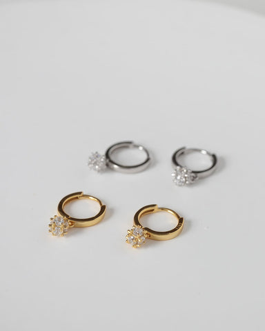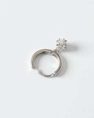 ころんと丸いフォルムが可愛い、小粒のジルコニアモチーフが揺れるフープピアス。