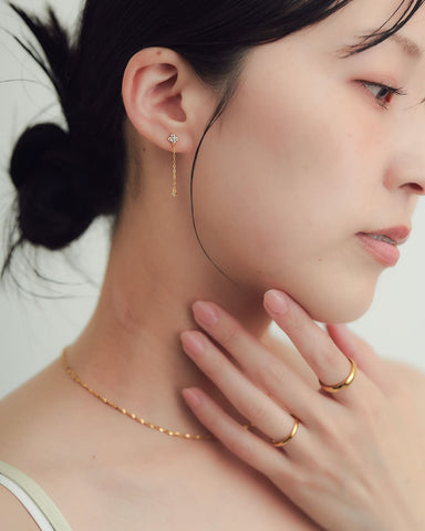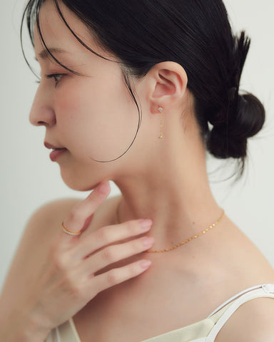 華奢なチェーンと、きらめく小さなモチーフが揺れる姿は、自分らしさを大切にしたい日常に寄り添う、静かなアクセント。