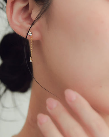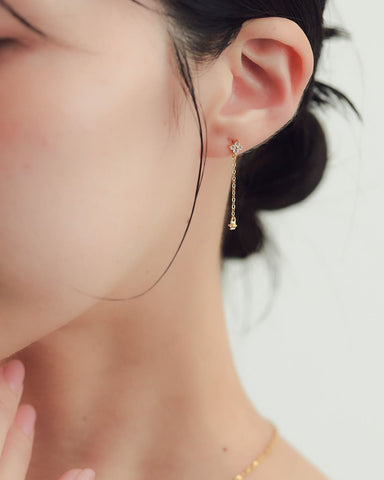 ゆらゆらと揺れるたびに、キュービックジルコニアが光をとらえて、きらりとした輝きを耳元にプラスしてくれます。