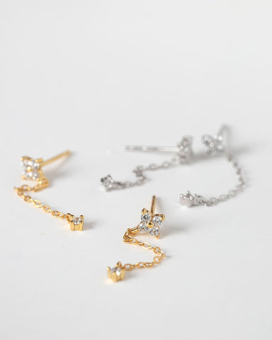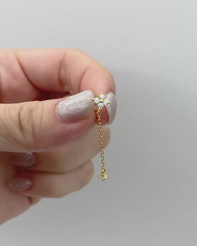 小さなお花のようなモチーフから、すっと伸びる繊細なチェーン。