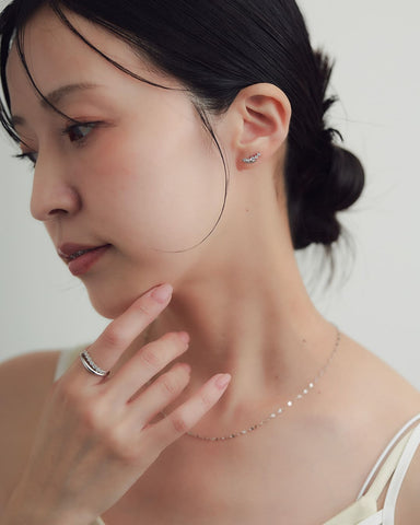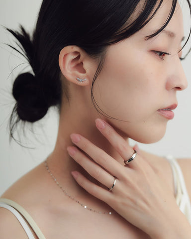- Silver925・Silver950などの貴金属はやわらかく繊細な素材です。強い力や長時間の負担がかかると、変形や石取れの原因となることがございますので、お取り扱いにはご注意ください。