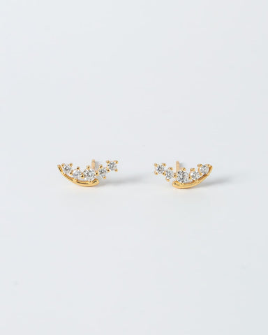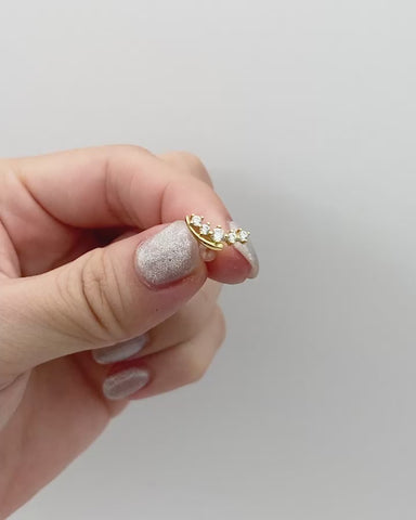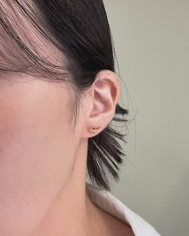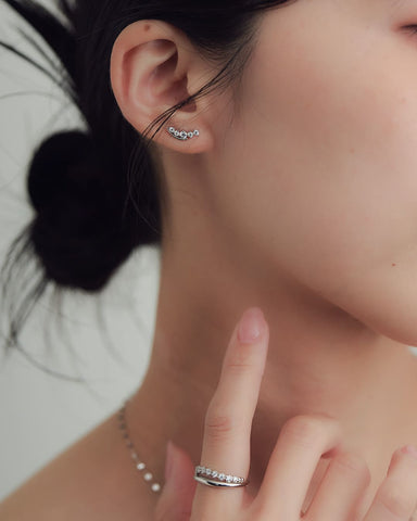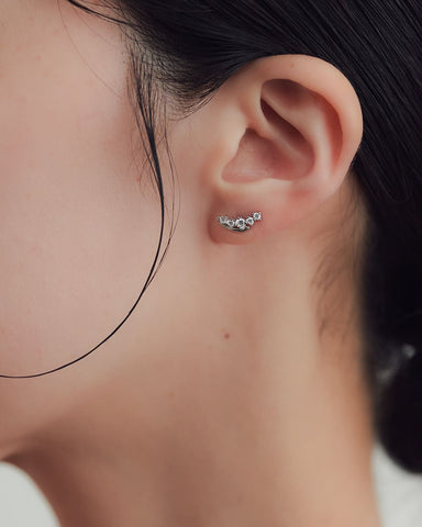 耳たぶに沿うようにカーブしたラインに、大小のジルコニアがちょんちょんと並んだピアス。
