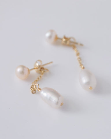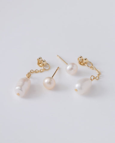 小さなパールと大きなパールが連なって落ちる姿は、まるで朝の光に透ける露のよう。