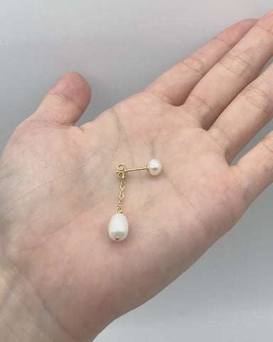 その先に淡水パールがころんと下がるデザインのピアスです。
