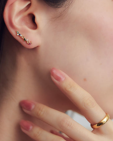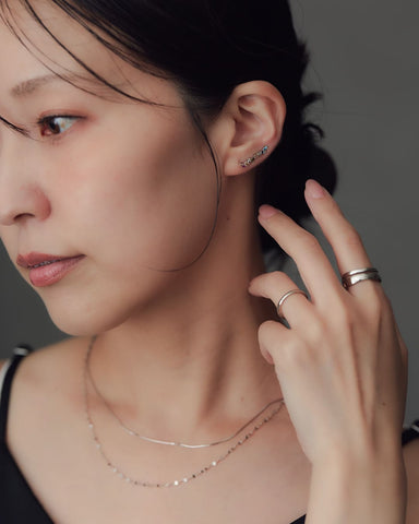 片耳で約0.55gと軽やかで、着け心地も快適。華やかだけど派手すぎず、カジュアルなコーデに“抜け感”として取り入れるのもおすすめです。シルバーは透明感のある爽やかさを、ゴールドはまるで光の粒をまとうような華やぎを添えてくれます。シンプルな装いの日も、ひとさじの彩りで気分まで明るく。