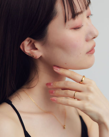 耳にぴたっとフィットする仕様で、スタッドピアスなのにイヤーカフ風のニュアンスが楽しめるのもポイントです。
