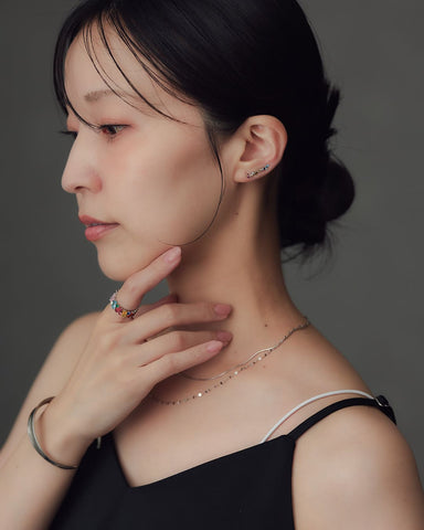 - Silver925・Silver950などの貴金属はやわらかく繊細な素材です。強い力や長時間の負担がかかると、変形や石取れの原因となることがございますので、お取り扱いにはご注意ください。
