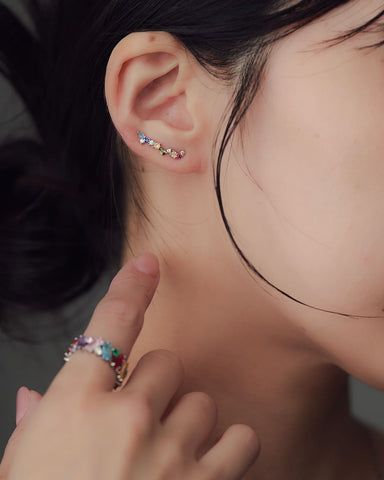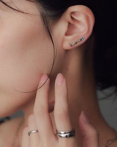 耳元にかかる小さな虹のように、日常の中にさりげなく“色”と“光”を届けてくれる存在であってほしい、という想いを込めて名づけました。