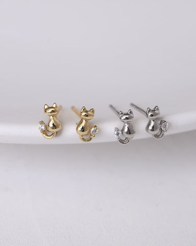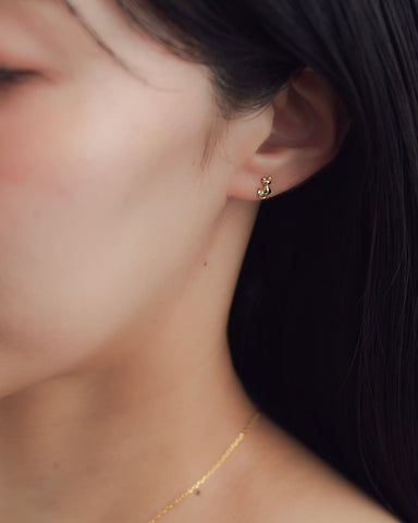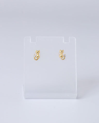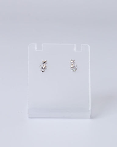 小さな猫がちょこんと座る姿をモチーフにした、遊び心あふれるピアス。