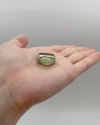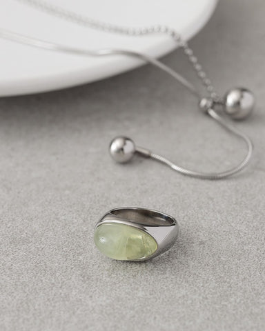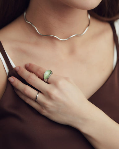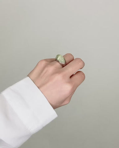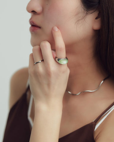 つるんと艶めく楕円のモチーフが、指先でそっときらめくリング。