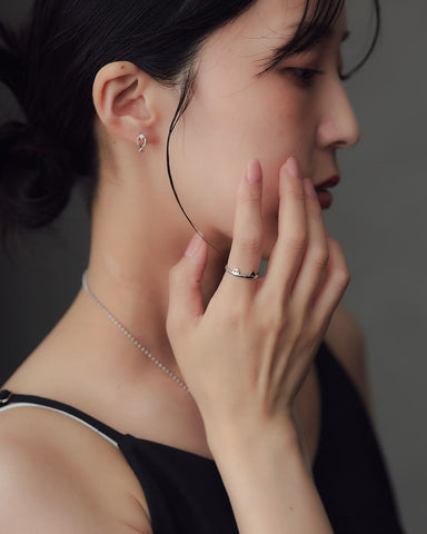 - Silver925・Silver950などの貴金属はやわらかく繊細な素材です。強い力や長時間の負担がかかると、変形や石取れの原因となることがございますので、お取り扱いにはご注意ください。