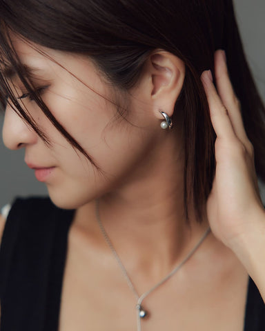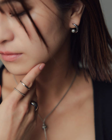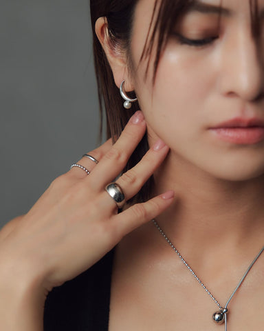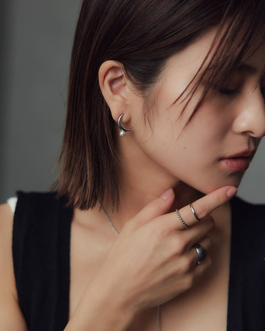 月のように静かな存在感を放つイヤリングは、耳元にふわっとやさしい余韻を残します。