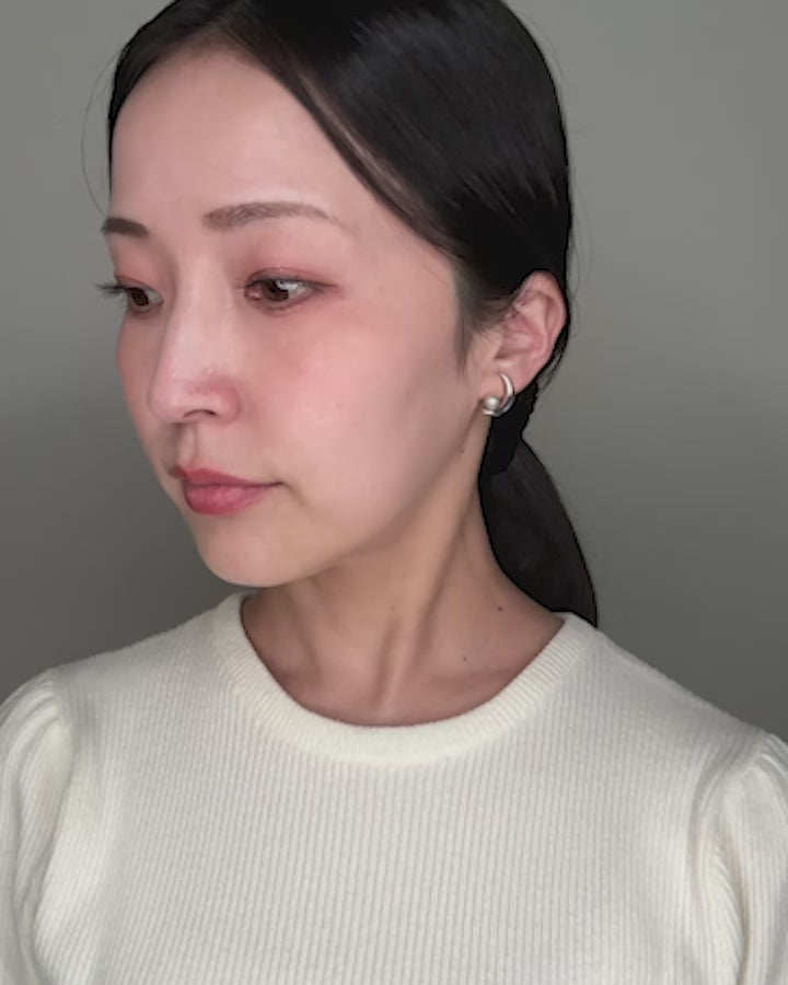 丸みのあるフォルムと控えめなサイズ感が、横顔をすっきりと美しく演出。主張しすぎないのに、どこか印象に残る佇まいです。