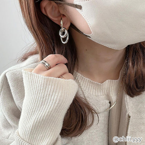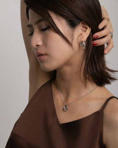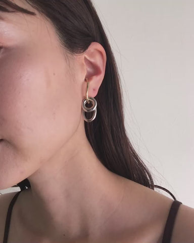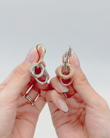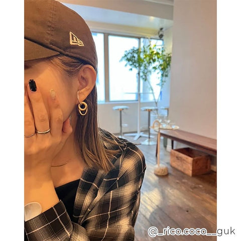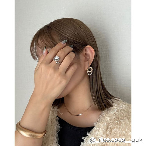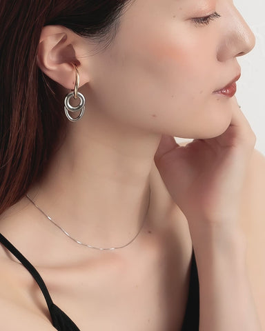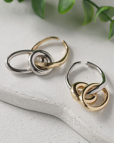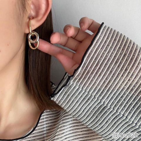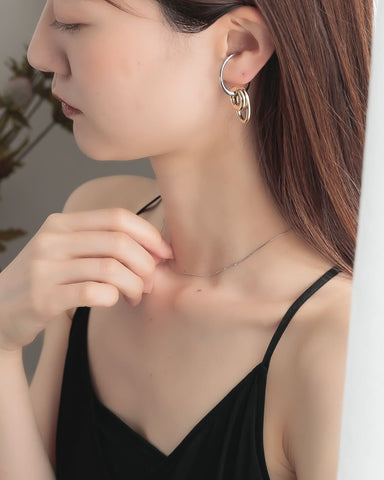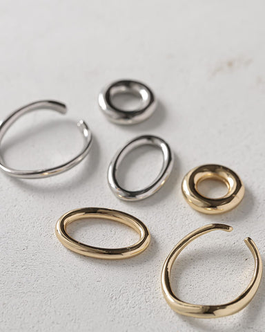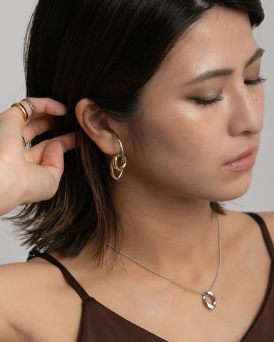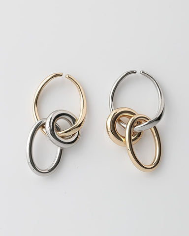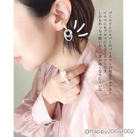 大きさ・形の異なるフープを組み合わせたバイカラーのイヤーカフ。