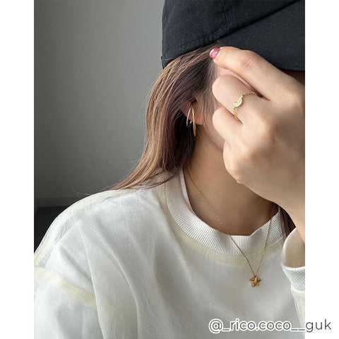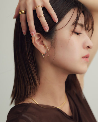 コーディネートや肌色を選ばずに使える万能カラーは、ゴールド派・シルバー派のどちらにもおすすめ。シンプルなトップスに合わせるだけで、こなれ感のある耳元を演出してくれます。