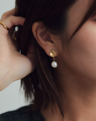 ひとつひとつ形が異なる“一点もの”感が魅力で、ナチュラルながらも印象的な耳元に仕上がります。