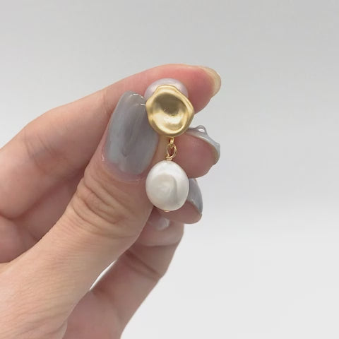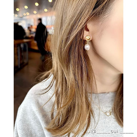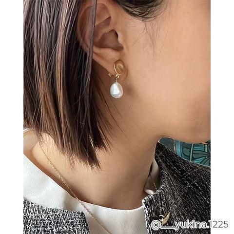 大ぶりのバロックパールが目を引く、存在感たっぷりのイヤリング。