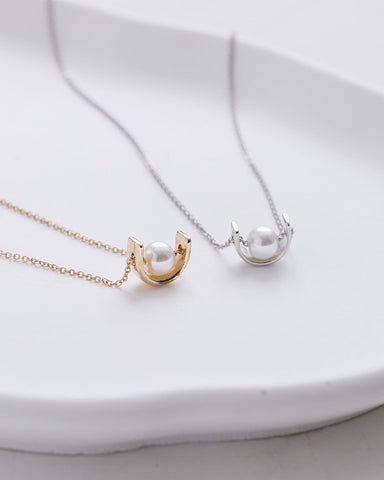 女性らしさを引き立てる、上品なパールモチーフのネックレス。