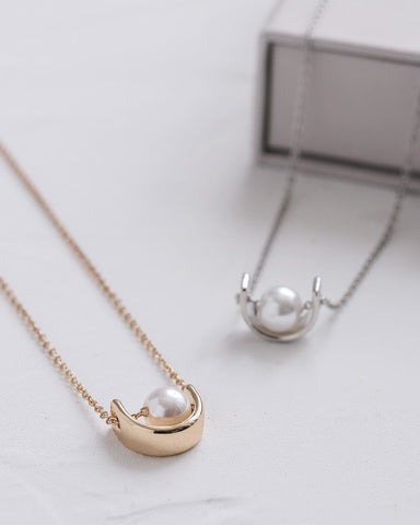 【10/24(金)20:00~新色追加!】【18KGP】半月モチーフプレートパールネックレス【日経WOMEN11月号掲載】