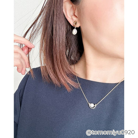 パールのやわらかな光が、女性らしさを際立たせながら、シンプルなコーディネートにも品のあるアクセントを添えます。ゴールドのチェーンは18KGP加工が施され、肌なじみの良い温かみのある色味で、顔周りを明るく見せてくれます。