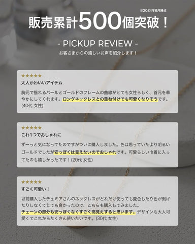 | 素材 | チェーン:ステンレス(18KGP/ニッケルフリー) トップ:合金(18KGP)・イミテーションパール |