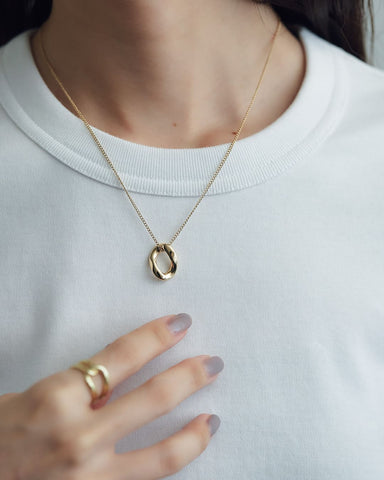ニュアンスある表情のサークルモチーフで洗練されたデザインが魅力のシンプルなネックレス。