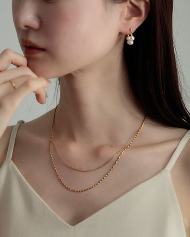 チェーンの太さや長さにもこだわり、華奢な首元にちょうどよく映える絶妙なボリュームに仕上げました。