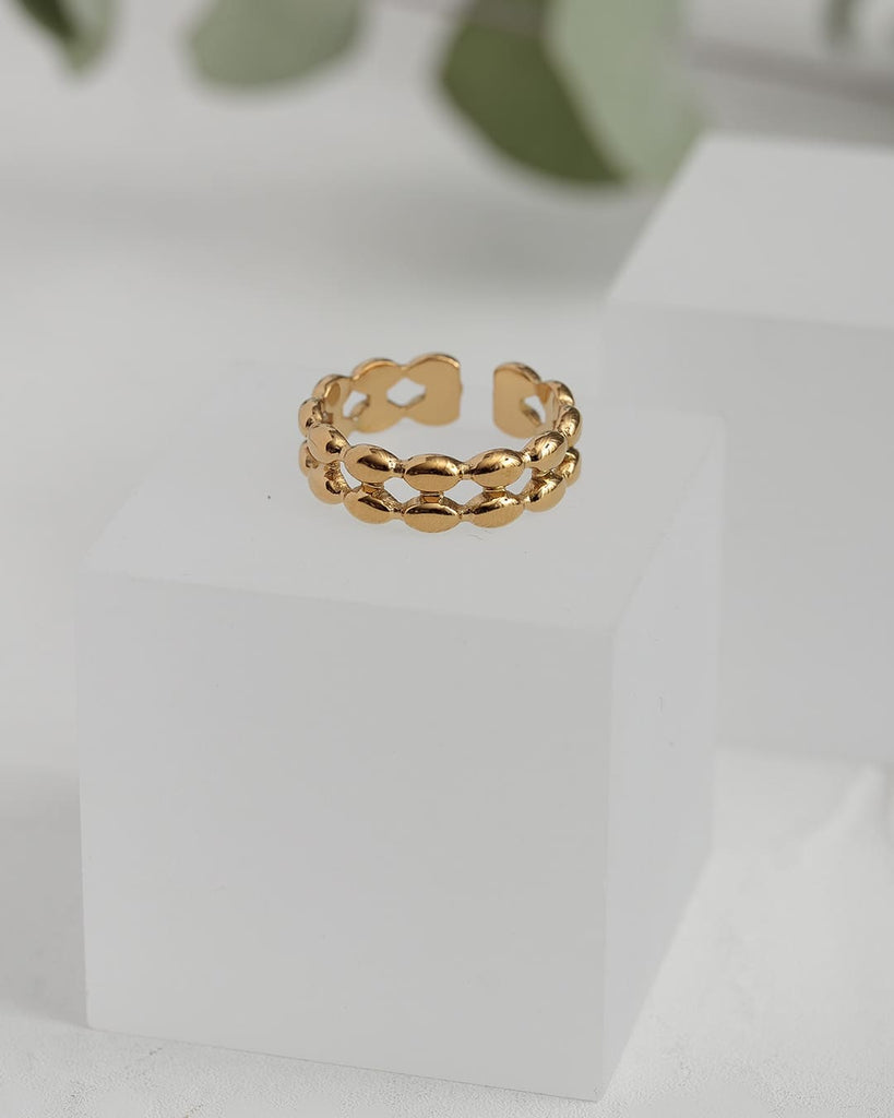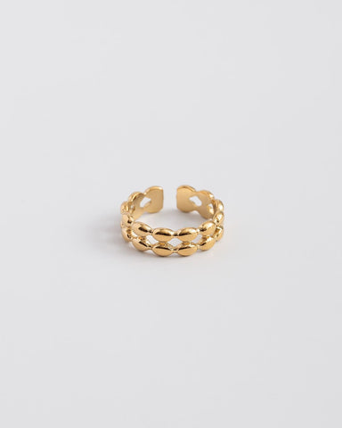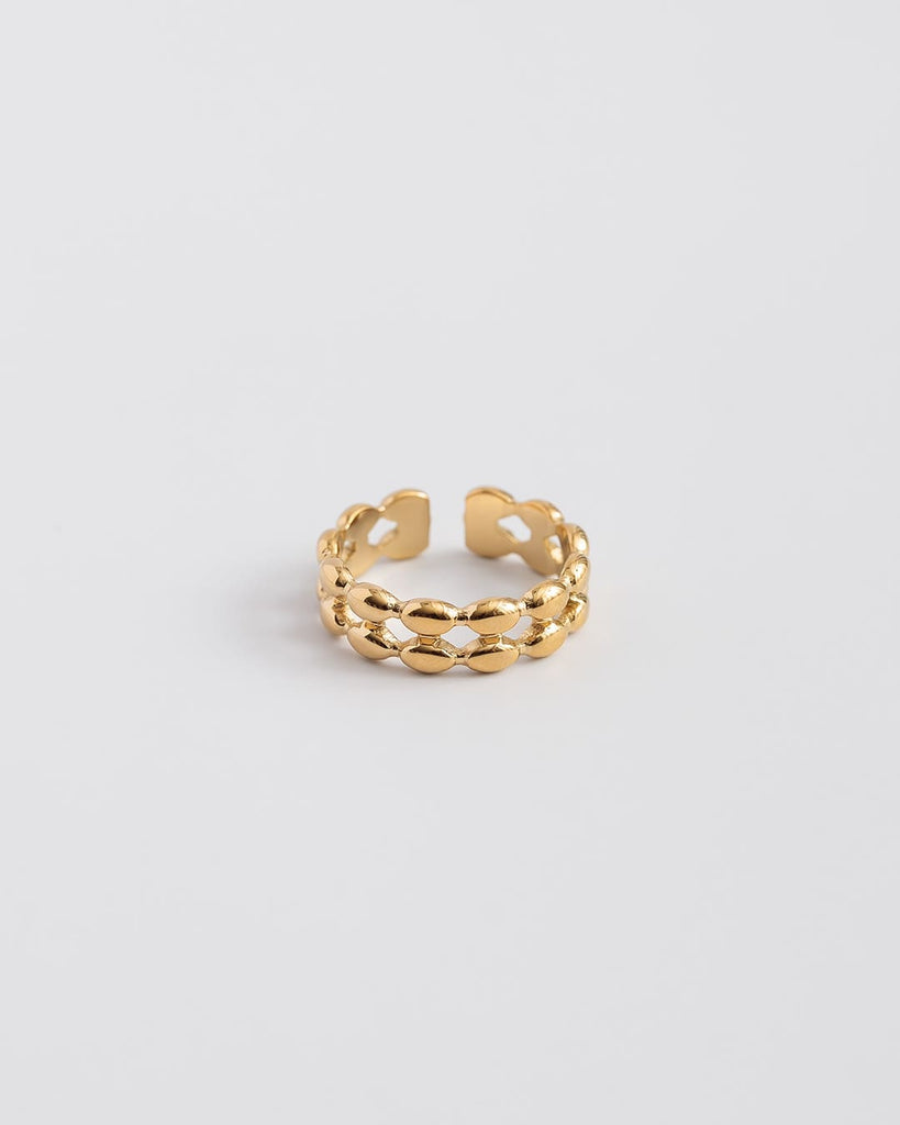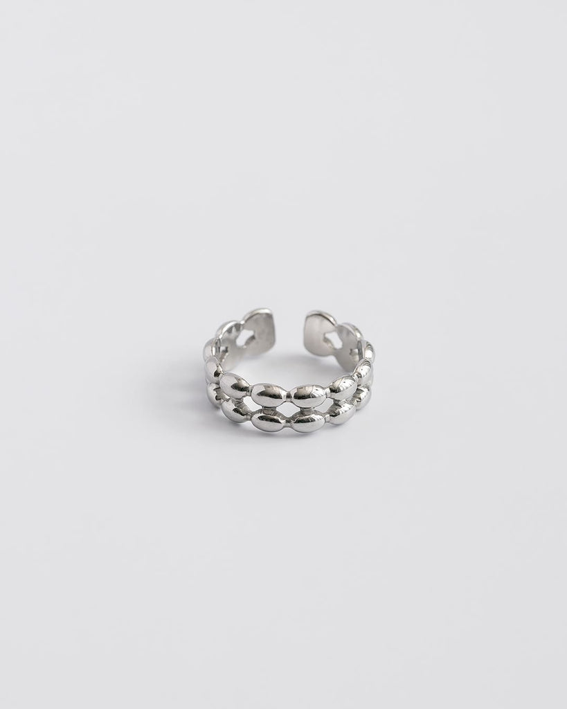 ぷっくりとした丸みのあるモチーフが2列に並び、シンプルながらも存在感のあるデザインです。