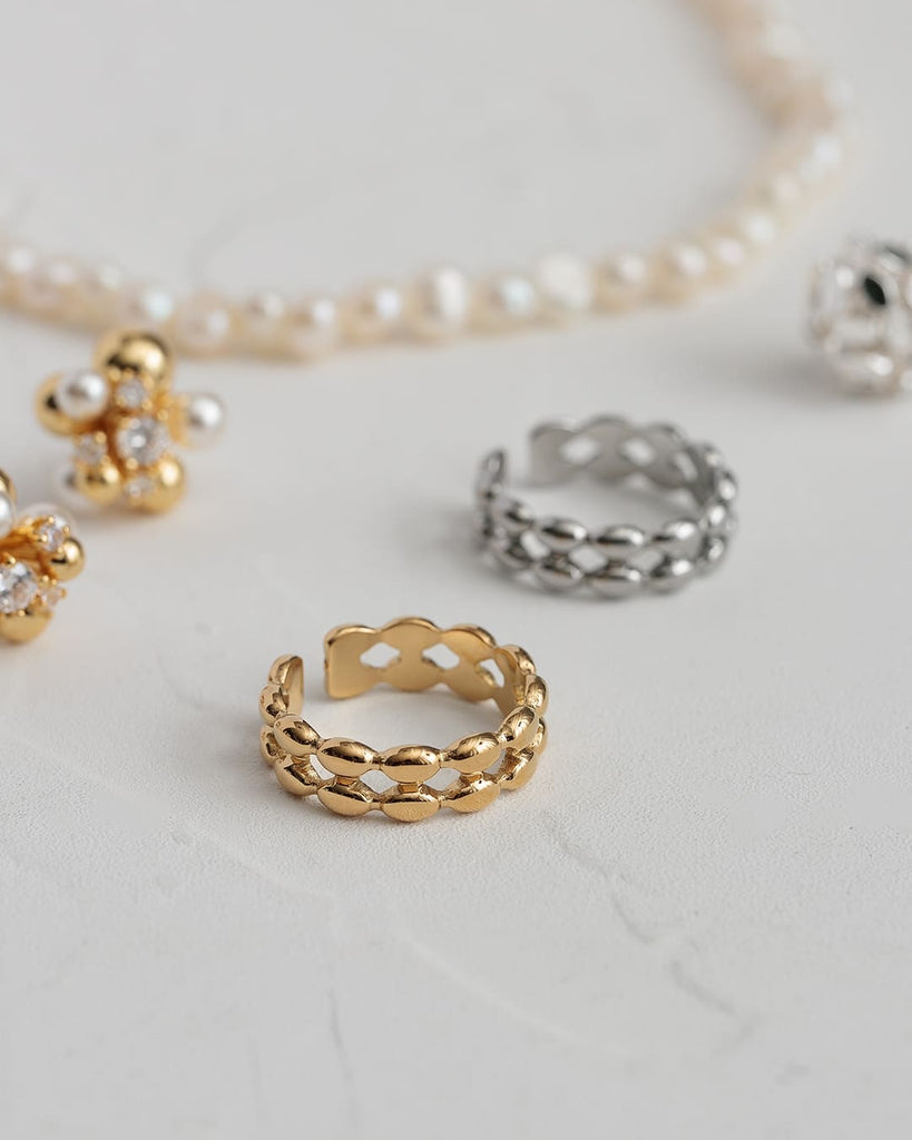 シンプルコーデにアクセントを加えたり、華奢なリングと重ねてこなれ感を演出したりと、スタイルに合わせて自在に楽しめるアイテムです。
