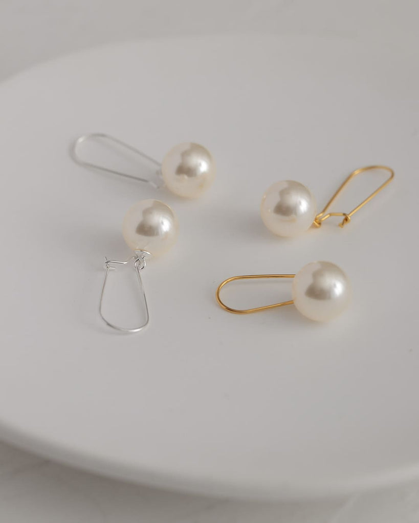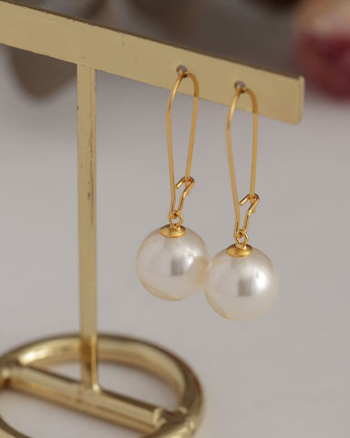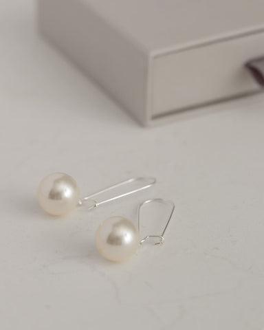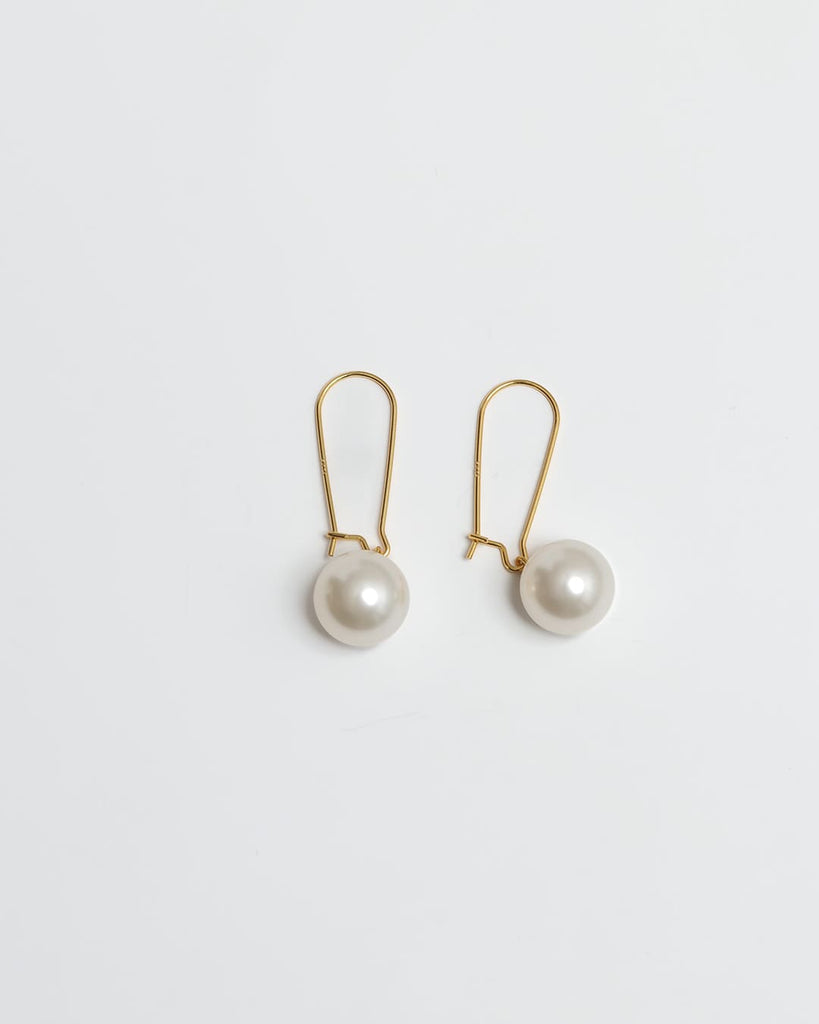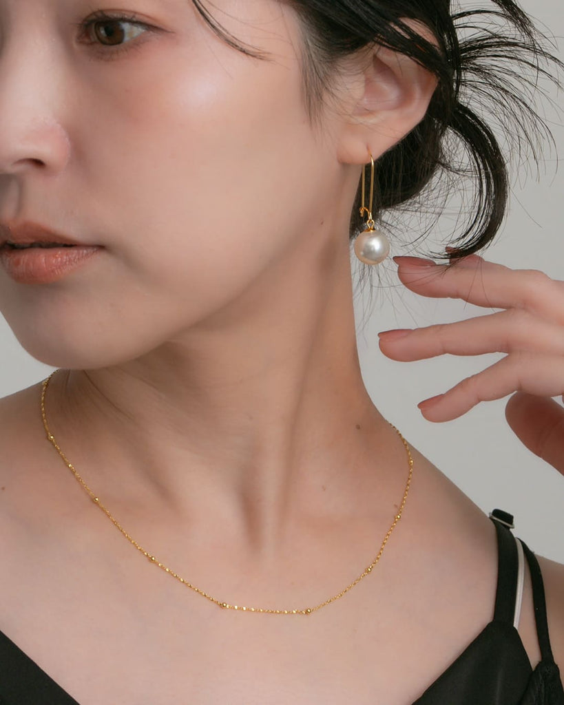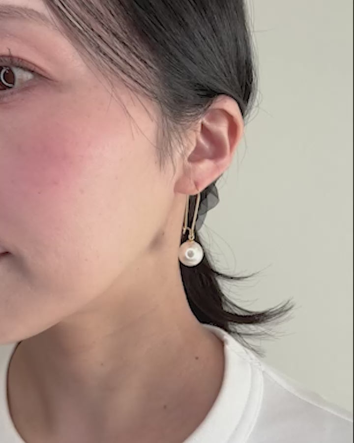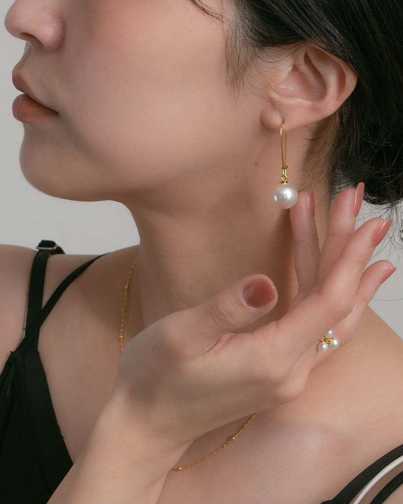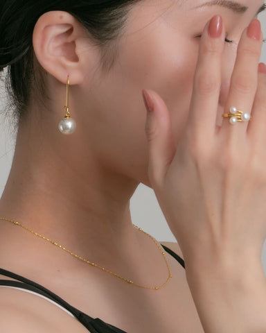 ころんとした艶パールが、耳元でぷらんと軽やかに揺れるフックピアス。