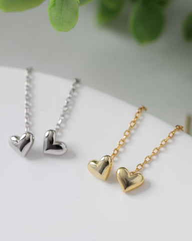 小ぶりのハートモチーフが付いたチェーンピアス。