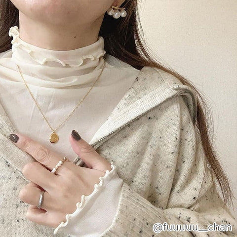 小粒なパールの上品さと華奢さで、女性らしい雰囲気が手に入るアイテム。