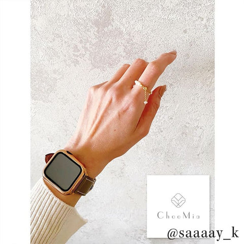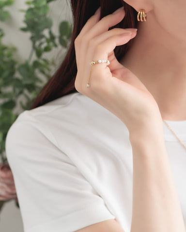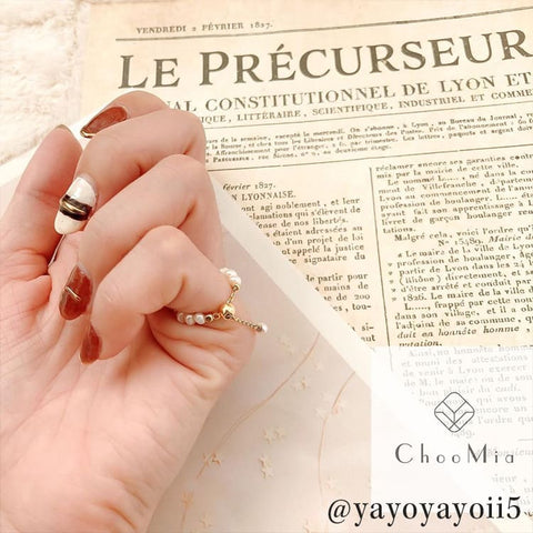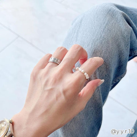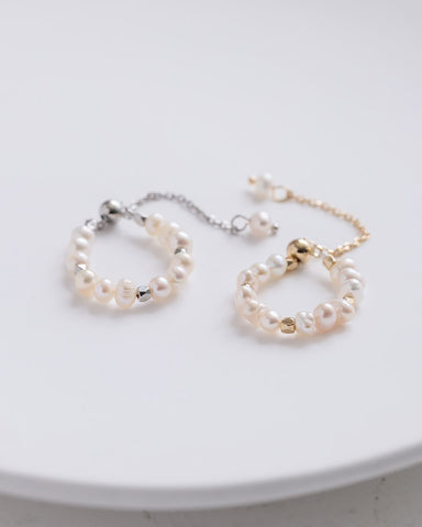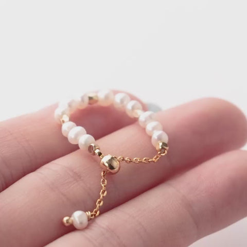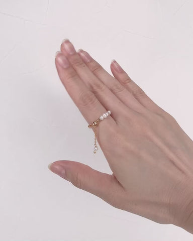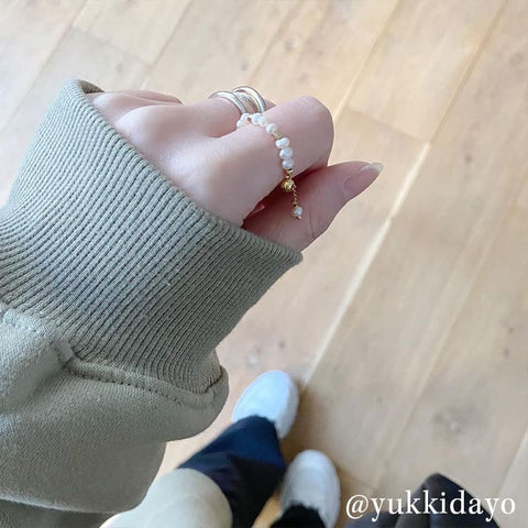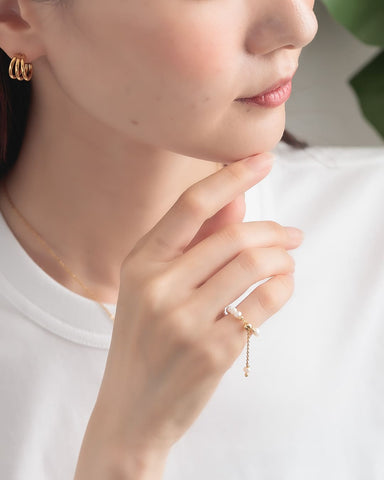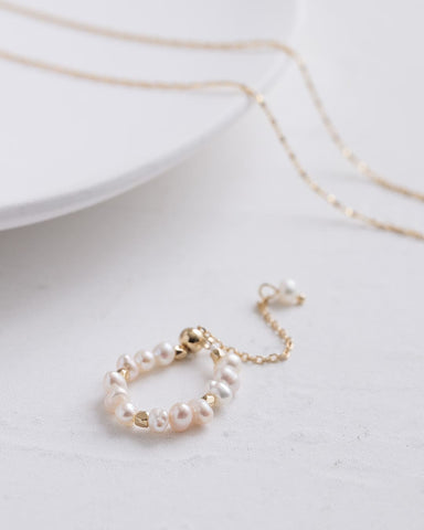 不揃いな天然淡水パールのチェーンリング。
