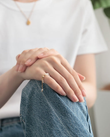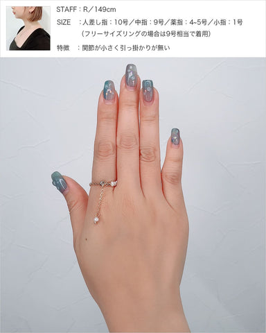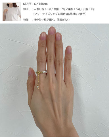チェーンを調節して号数の変更ができ、どの指にもぴったりと合わせられるため、ピンキーリングとしてもお使いいただけます。